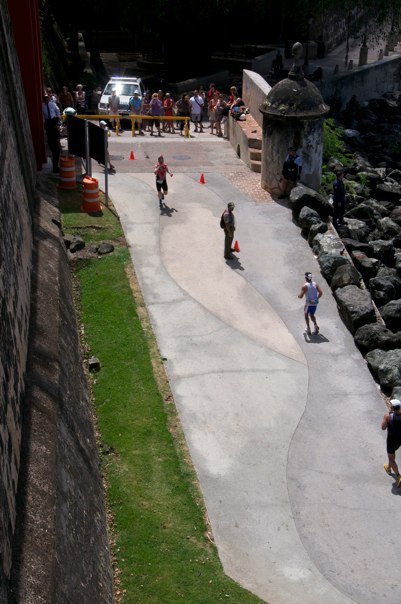 I had run this course before probably more than 50 times. I am not joking, the problem none of them before riding 56 miles. I knew it will be tough because of the small but steep hills. I began running well but once you get to run near El Morro fort were there is no shadow no people, only you the bay the sun and athletes. After this part you climb back up in what I consider is the most difficult part of the course this 400 meter steep hill kills you. From there is all survival mode and do the loop again. This is a tough run course that is all what I can say is hard and you have to be ready for it. I thought I was ready for it but I wasn’t.